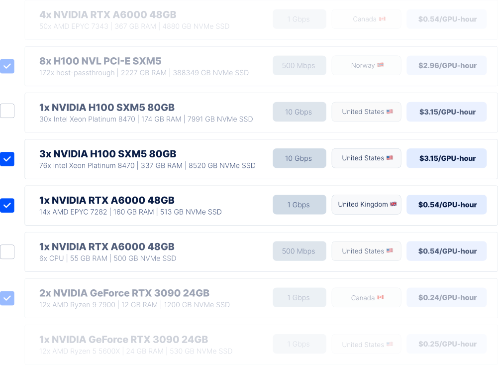 Get instant access to NVIDIA GPUs—pay only for what you use, with transparent rates.